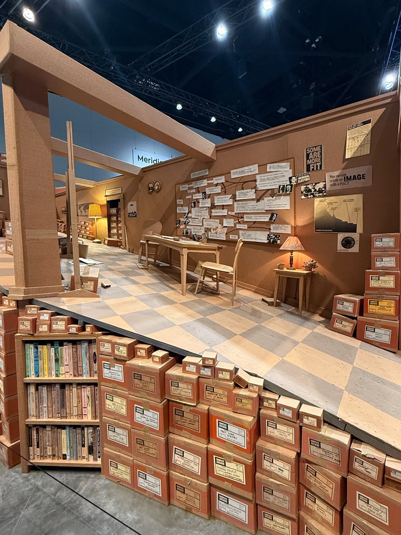- Ward Shelley, The Last Library IV: Written in Water (2020-25), Freight+Volume, em que livros se amontoam junto a caixas com etiquetas como “Medo da democracia” e “Fatos alternativos”.