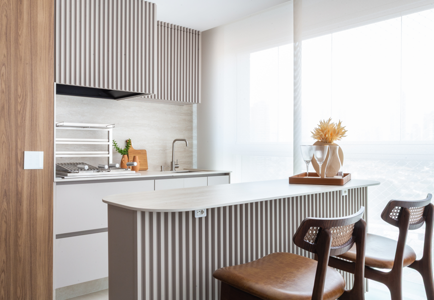 O trabalho surgiu a partir do Instagram, onde os clientes se identificaram com a linguagem da profissional e confiaram a ela a missão de cuidar de todo o processo: desde a escolha de marcenaria e marmoraria até o gerenciamento integral da obra.
